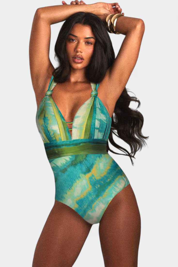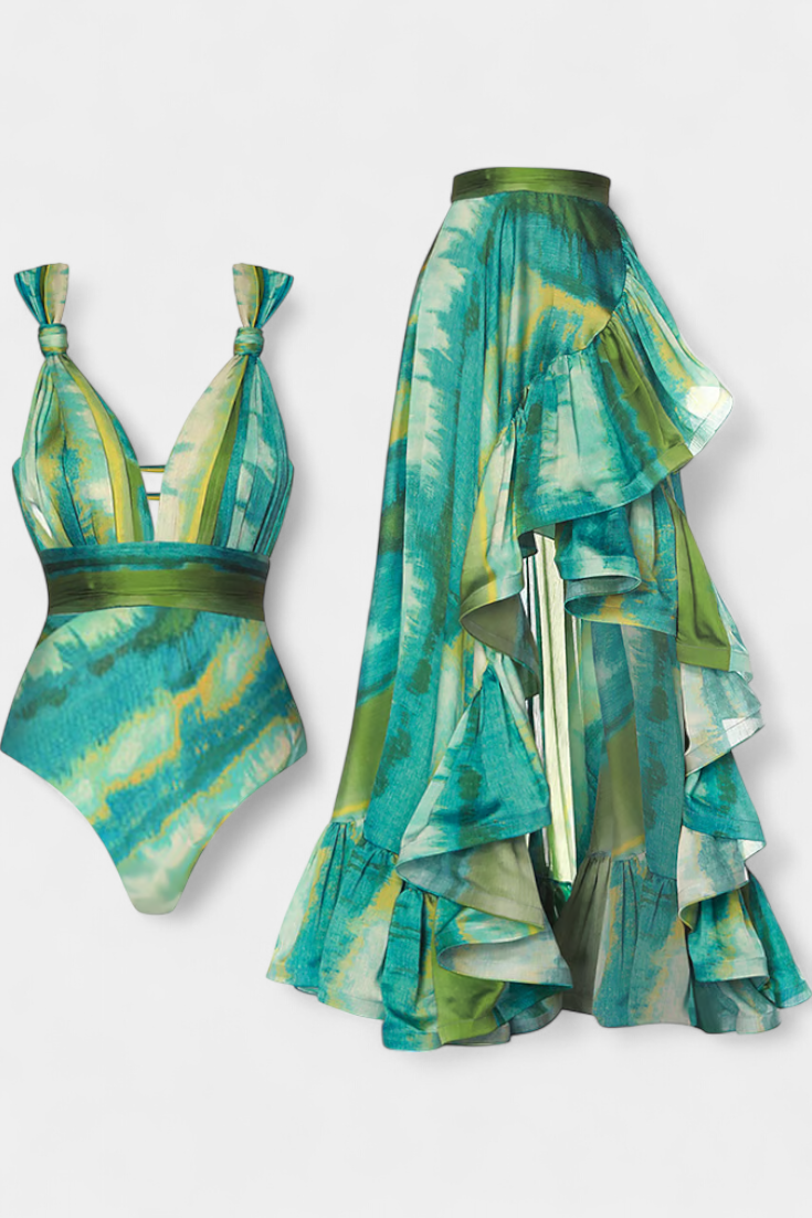 Refleja tu estilo con confianza en la playa o la piscina con el conjunto Falira. Este set combina un bañador entero con escote en V y un vestido cubresol a juego, ideal para lucir elegante sin esfuerzo en los días de sol.