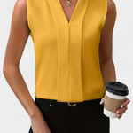 Estilosa y fresca, la blusa Nele es tu aliada perfecta para los días cálidos. Con su escote en V favorecedor y su silueta suelta, combina comodidad y feminidad con un aire relajado. Ideal para looks casuales o más pulidos según cómo la combines.
