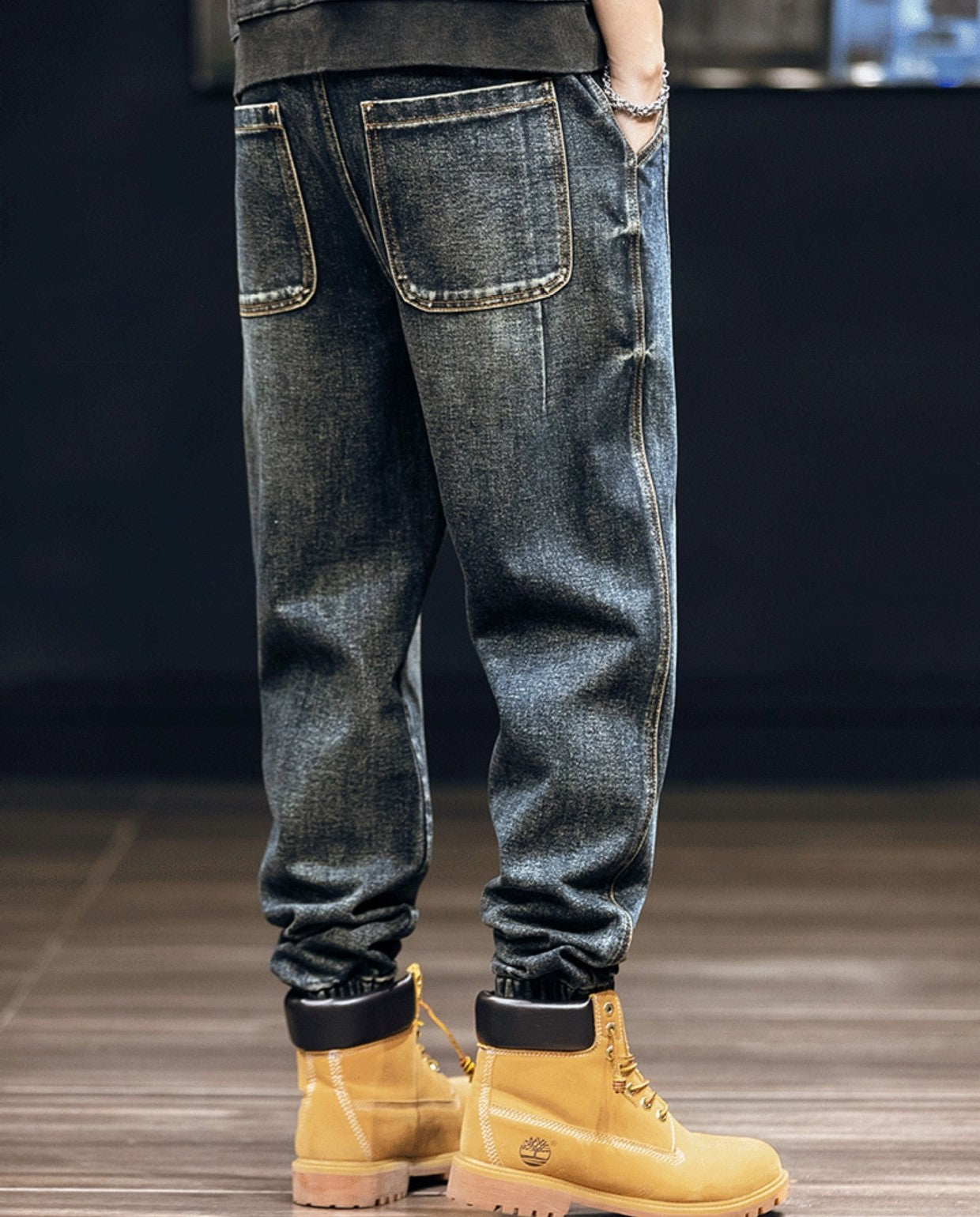 Con un diseño que combina costuras anguladas y definidas con un acabado stonewashed, estos joggers ofrecen un ajuste relajado mejorado por una cintura elástica ajustable, proporcionando una sensación cómoda para el uso diario.